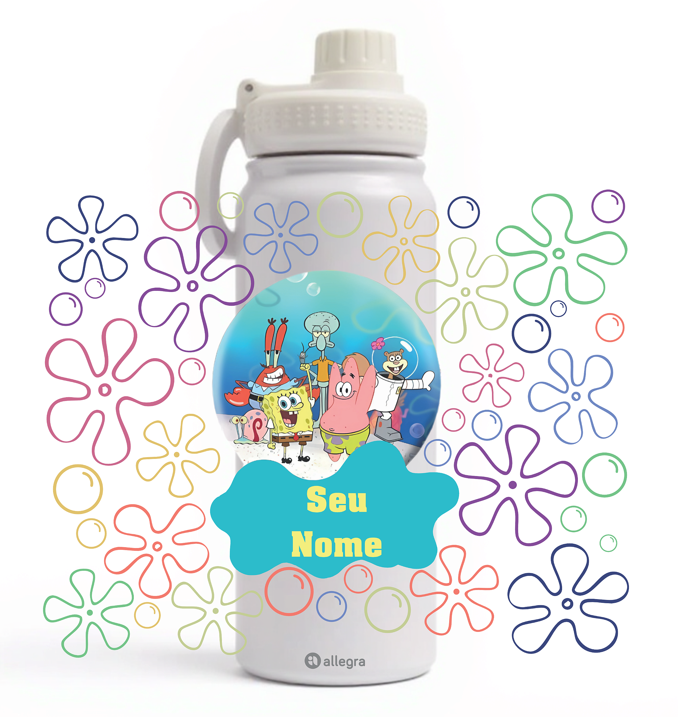 Garrafa Térmica Custom Ice 800ml - Bob Esponja & Turma